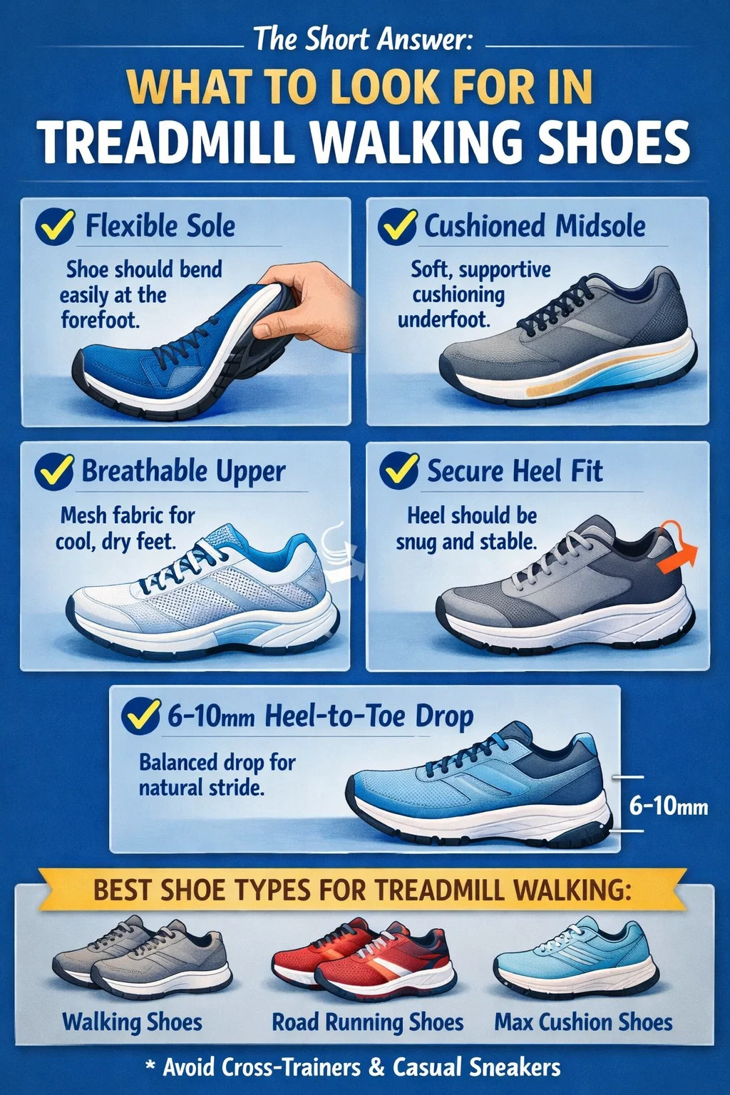 Большинство ортопедов и специалистов спортивной медицины рекомендуют специальные кроссовки для ходьбы или низкопрофильные кроссовки для использования на беговой дорожке, а не кросс-тренажеров или повседневных кроссовок. Причина проста: беговая дорожка Ходьба включает в себя тысячи повторяющихся шагов в одном и том же движении, а неправильная обувь может ускорить утомление, вызвать волдыри или способствовать чрезмерным травмам в коленях, бедрах и пояснице.