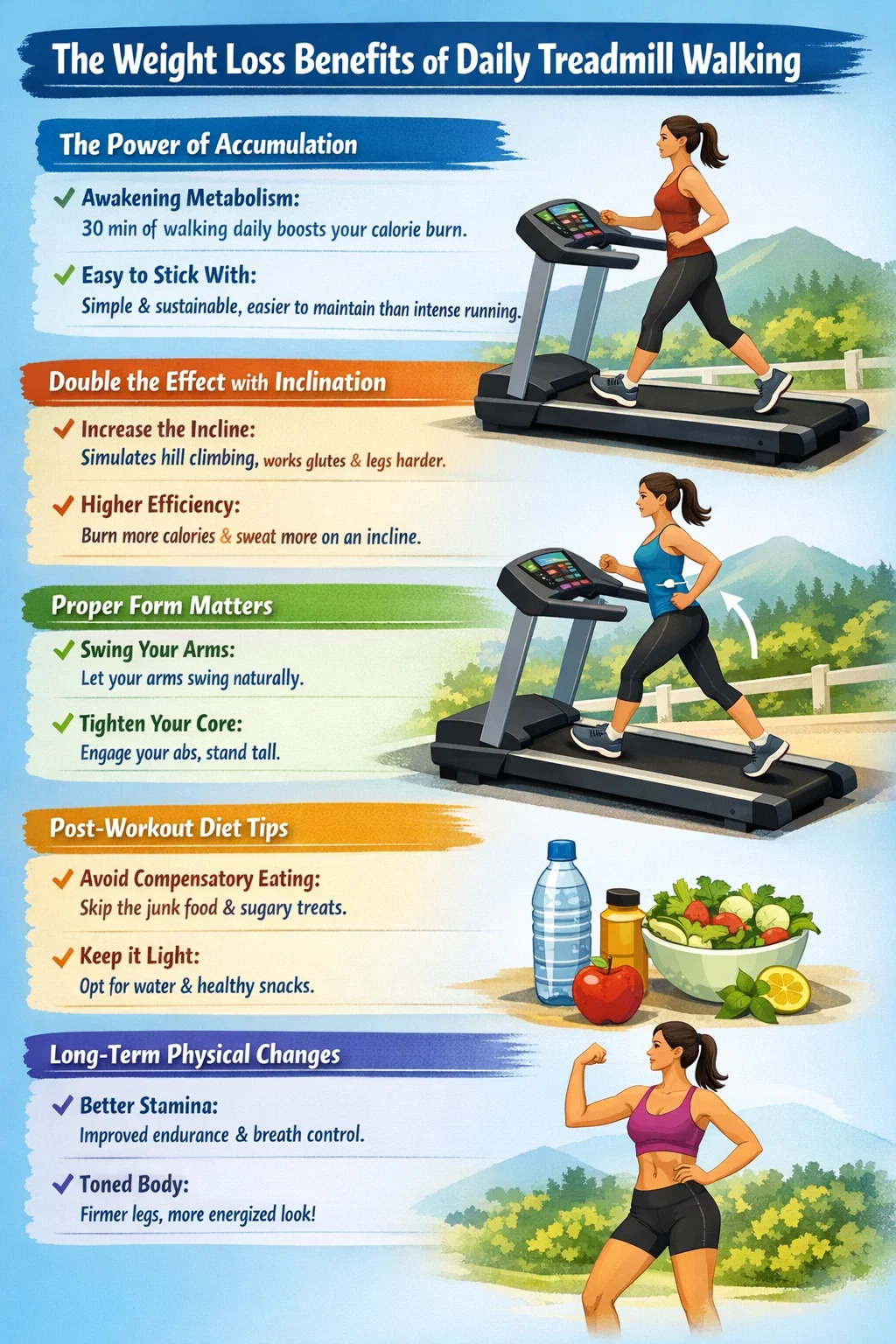 Пробуждение метаболизма: 30 минут беговая дорожка ежедневная ходьба ускоряет кровообращение, делая ваше тело похожим на только что запущенную машину, активно потребляющую энергию.